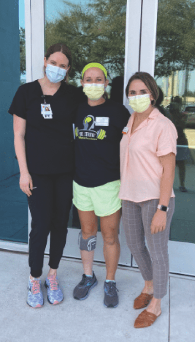 Soon after graduating in 2016, however, Claire suffered a traumatic brain injury (TBI) in a car accident that left her right side almost completely immobile. She spent five months hospitalized, confined to a wheelchair and unable to speak—a devastating state for someone who, only a short time before, had been an elite college athlete.